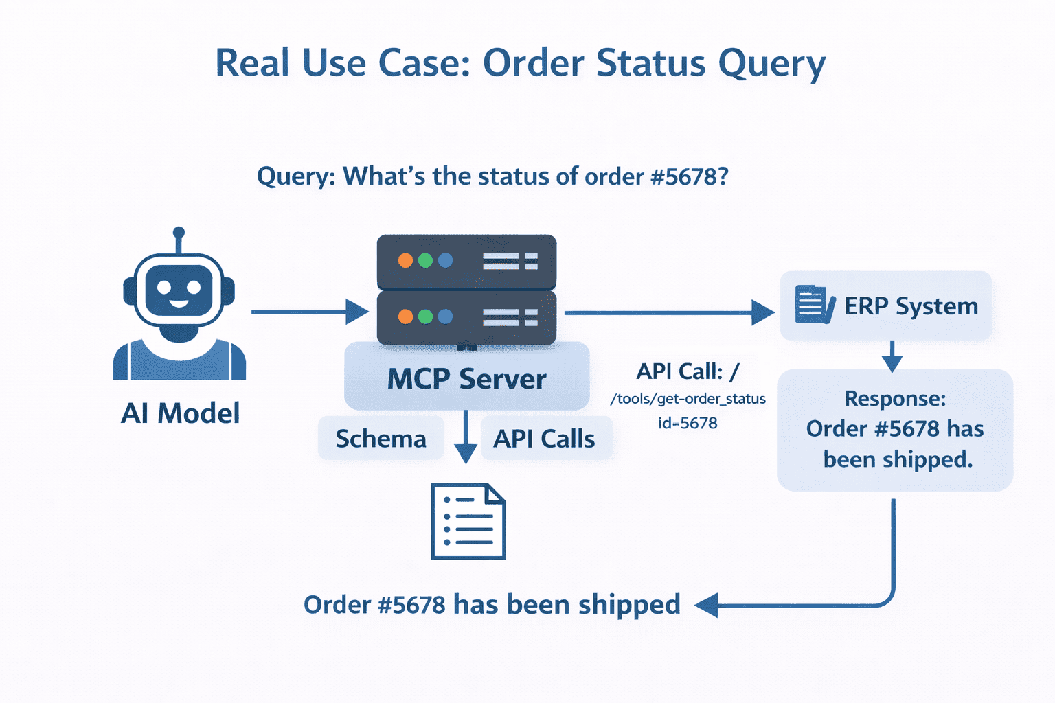 This server exposes a tool endpoint that AI can call to fetch real-time order status.